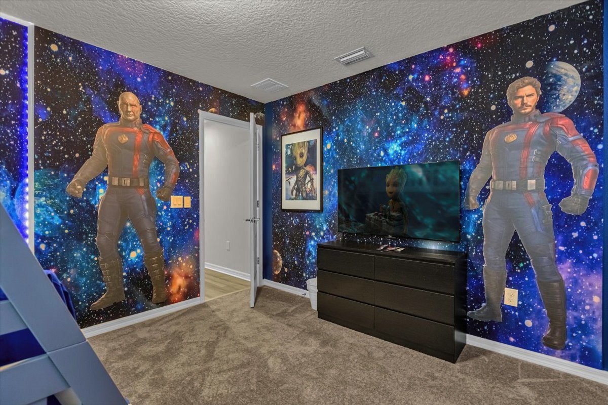 Home Highlights: Star Wars Theme Movie Theater - Star Wars Theme Game Room - Outdoor Poolside Theater w/Bar & TV - Private South Facing Heated Pool/Spa (heating extra $) With Wall Behind - Covered Lanai With Plenty Of Seating For Lounging And Dining - Kids Playroom (under the stairs) - 4 King Suites - 3 Themed Kids' Bedrooms